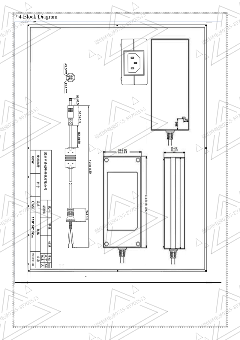 19V3.5A電源適配器規格書